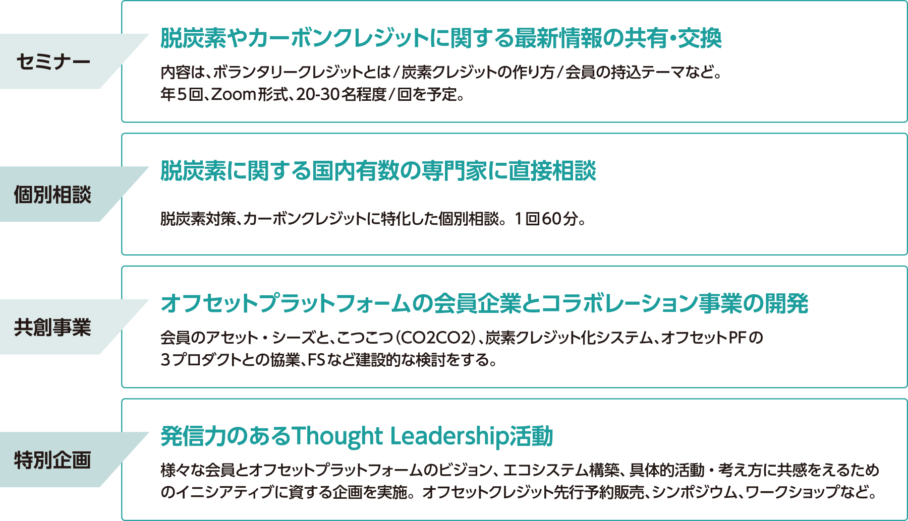 2.オフセットプラットフォームを使って、具体的な収益化の仕組み、ソリューションづくりができる。